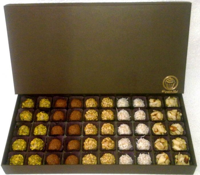 brigadeiro gourmet com 49 na caixa de madeira pintada a mão